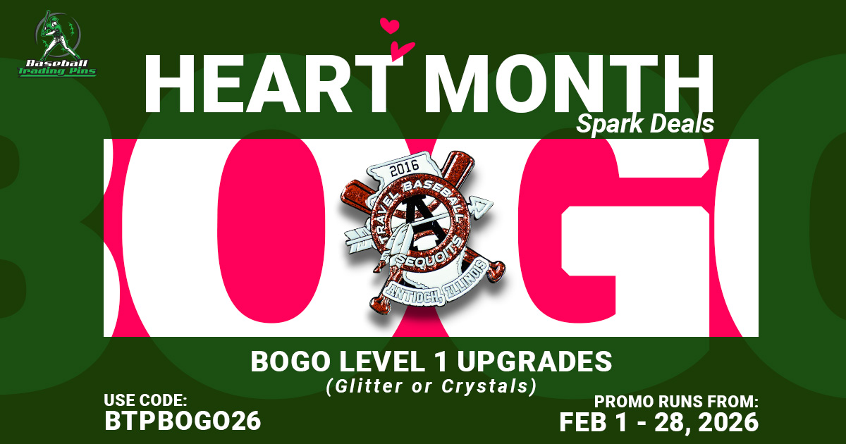 Looking for a deal on your team sports pins? Look no further! Browse our trading pin specials page where we offer all of our promotions and discounts for major league savings on your custom team pins! All you need to do is let our team know and BOOM instant savings! Save big with our trading pin specials!